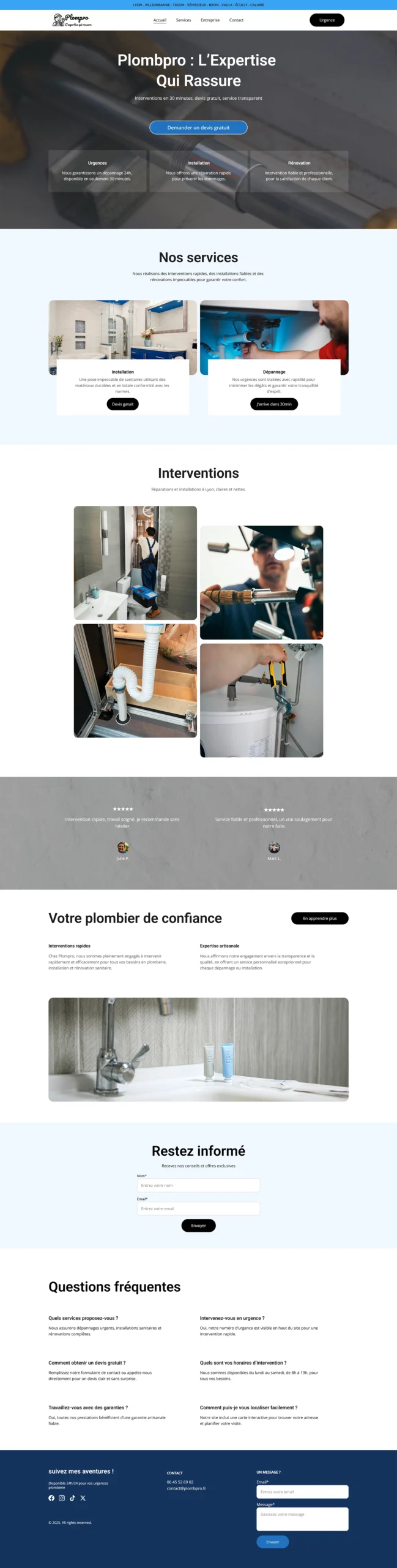 Résultat : Un site qui filtre les demandes et capte les clients en recherche de dépannage rapide ou d’installation sanitaire.